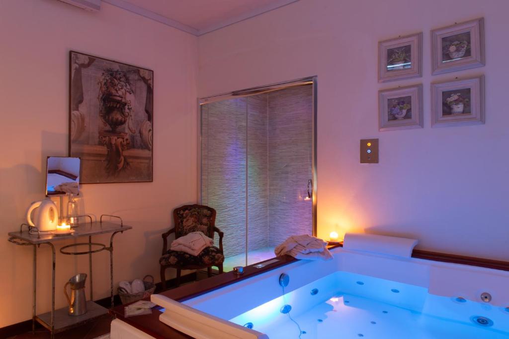 The wine cellar is stocked with the best labels. There is a small library on site and a hall with an ancient stone fireplace and free WiFi. Guests also enjoy a panoramic terrace with tables and chairs.