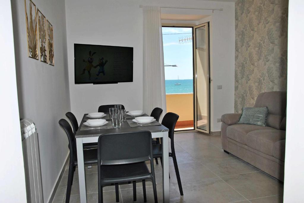 Outdoor seating is also available at the vacation home. Brezza di mare appartamento fronte spiaggia features 3 bedrooms, a fully equipped kitchen with a dishwasher and an oven, a washing machine, and 2 bathrooms with a hair dryer.
