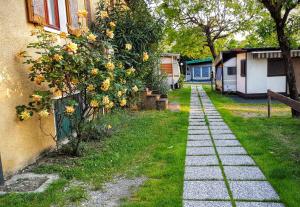 Featuring a private entrance, this air-conditioned mobile home consists of 1 living room, 2 separate bedrooms and 1 bathroom with a shower. The well-equipped kitchen features a stovetop, a refrigerator and kitchenware. Among the room amenities are a washing machine, a seating area, a dining area as well as an outdoor dining area and garden views. The unit offers 2 beds.