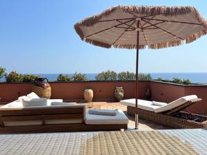 Providing a terrace and sea views, the spacious vacation home includes 3 bedrooms, a living room, satellite flat-screen TV, an equipped kitchen, and 2 bathrooms with a bidet and a bath. Towels and bed linen are featured in the vacation home.