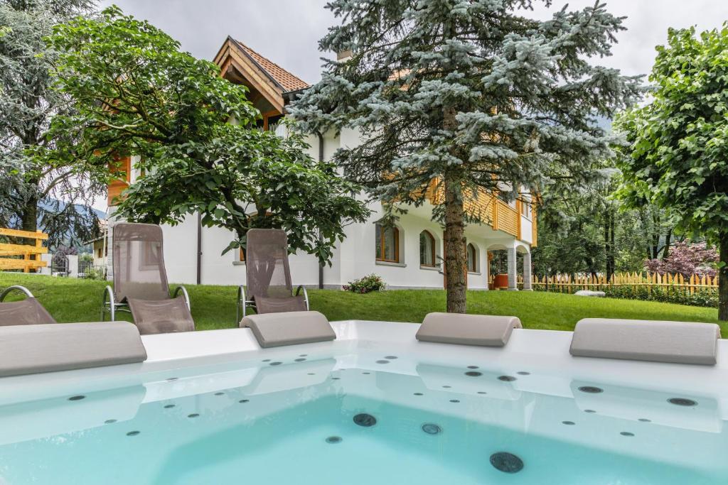 Featuring a garden, Chalet Mountain Plaza - Apt Overland offers accommodations in Pinzolo. This property offers access to a balcony, free private parking, and free Wifi. The apartment has an outdoor pool and a hot tub.