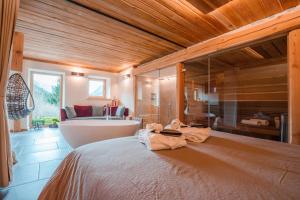 Guests will have a special experience as the double room offers a sauna. In the well-fitted kitchenette, guests will find a stovetop, a refrigerator, kitchenware and an electric kettle. The spacious double room provides a private entrance, soundproof walls, a balcony with garden views as well as a private bathroom featuring a walk-in shower. The unit offers 2 beds.