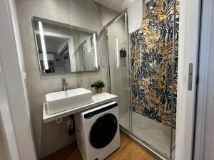 In the well-fitted kitchen, guests will find a stovetop, a refrigerator, a dishwasher and a microwave. This apartment is air-conditioned and has a seating area with a flat-screen TV, a washing machine, a tea and coffee maker, a dining area, as well as heating. The unit has 1 bed.