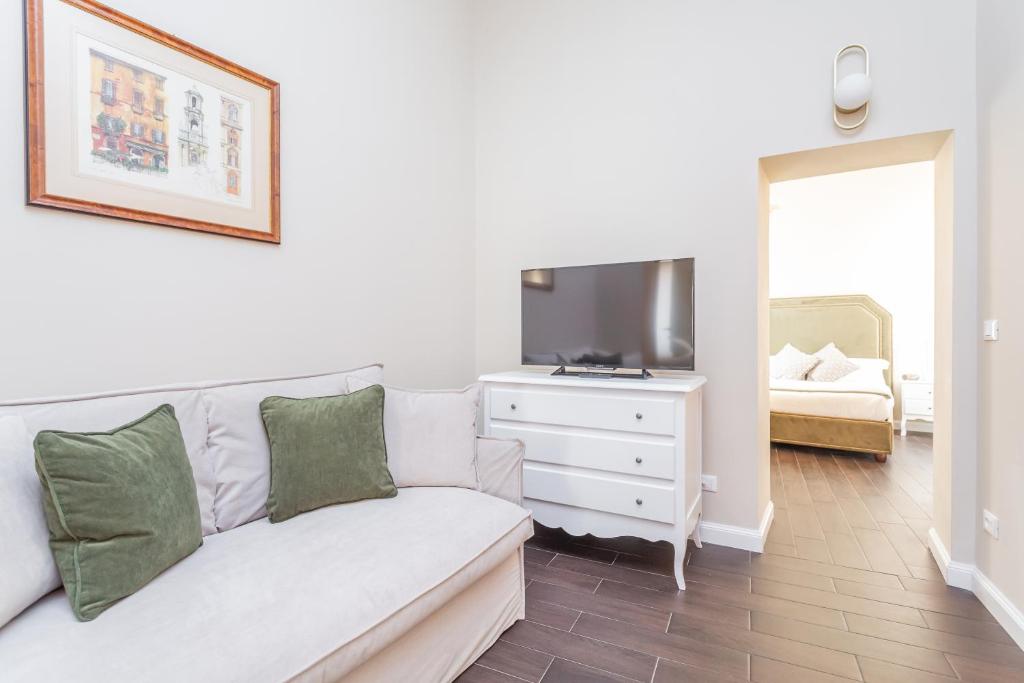 This elegant junior suite offers views of the Chiostro del Bramante museum, original 17th-century frescoed ceilings, a 32" LED TV, and a seating area. It includes a mini-bar and air conditioning. The private bathroom a large shower, hairdryer and free toiletries.