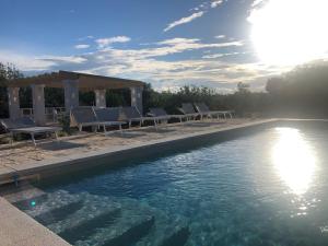 Guests will have a special experience as this holiday home provides a pool with a view and a fireplace. Featuring a private entrance, this air-conditioned holiday home is consisted of of 1 living room, 1 separate bedroom and 1 bathroom with a shower and a bidet. Guests will find a stovetop, a refrigerator and kitchenware in the kitchen. The holiday home also has a barbecue. The holiday home offers soundproof walls, a coffee machine, a seating area, a flat-screen TV, as well as garden views. The unit offers 2 beds.