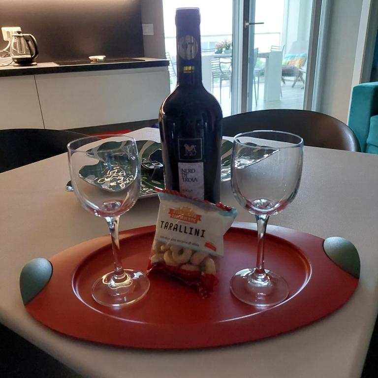 Guests can enjoy a meal on an outdoor dining area while overlooking the sea views. For added privacy, the accommodation features a private entrance. Basilica of Saint Nicholas is 22 miles from the apartment, while Bari Port is 26 miles away.
