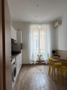 Air-conditioned apartment with a kitchen and a washing machine.
