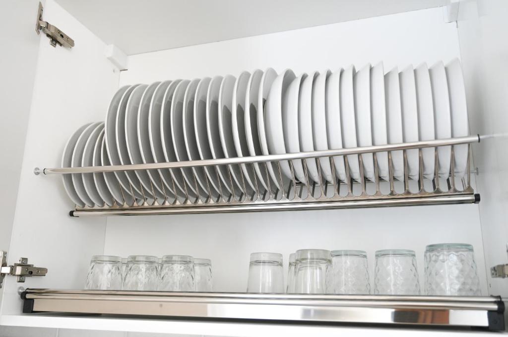 - All plates, cutlery, glasses, and other tableware sanitized