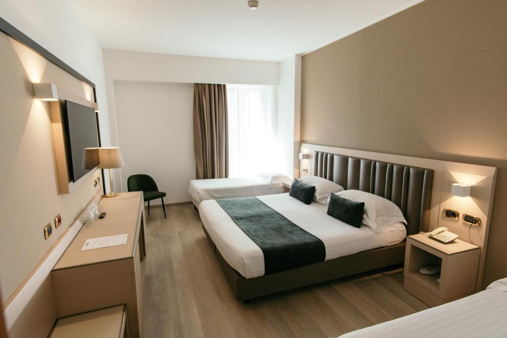 Providing free toiletries, this triple room includes a private bathroom with a bath, a bidet and a hairdryer. This triple room is air-conditioned and features a flat-screen TV with satellite channels, soundproof walls, a mini-bar and a wardrobe.