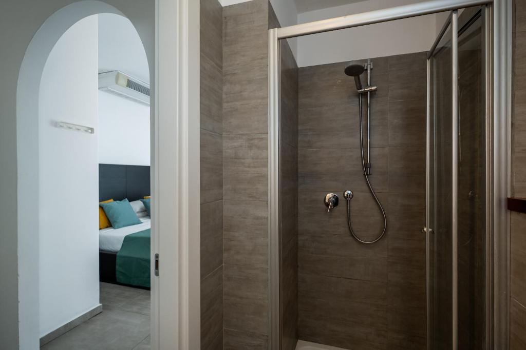 The double room provides air conditioning, a wardrobe, a balcony with sea views as well as a private bathroom featuring a bath or a shower. The unit offers 1 bed.