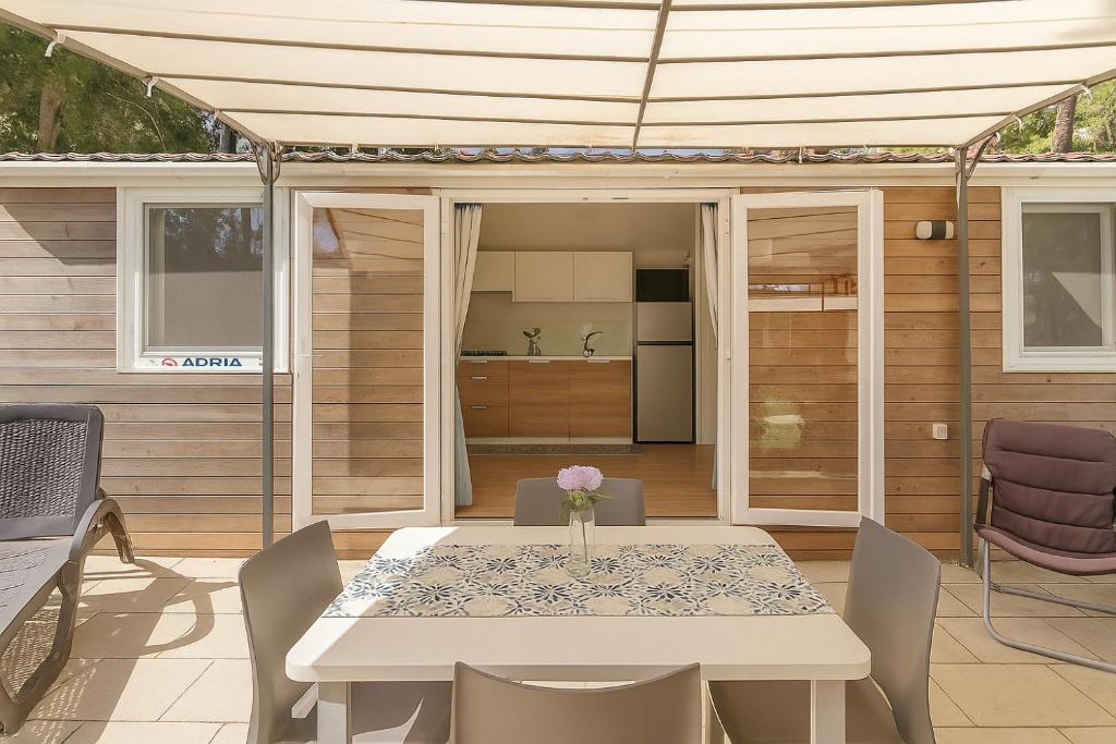 This mobile home includes 1 living room, 1 separate bedroom and 1 bathroom with a shower and free toiletries. The mobile home's kitchenette, which features a stovetop, is available for cooking and storing food. This mobile home has air conditioning, a sofa, a flat-screen TV and a patio. The unit has 3 beds.