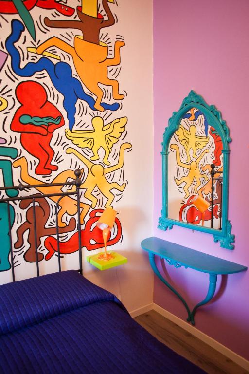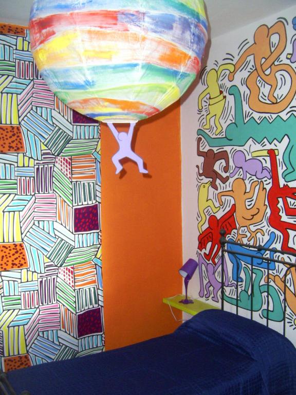 Featuring colorful walls and a bright décor, this room offers free Wi-Fi and wired internet. It comes with a private bathroom, a flat-screen TV and parquet floors.