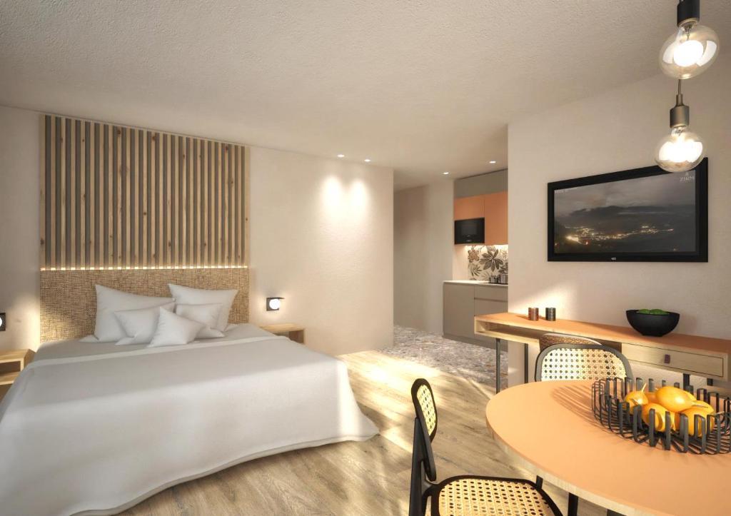 Providing free toiletries and bathrobes, this studio includes a private bathroom with a bath or a shower, a bidet and a hairdryer. Meals can be prepared in the well-fitted kitchenette, which comes with a stovetop, a refrigerator, a dishwasher and kitchenware. Featuring a balcony with mountain views, this studio also provides a mini-bar and a flat-screen TV with satellite channels. The unit offers 2 beds.