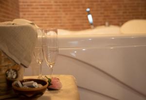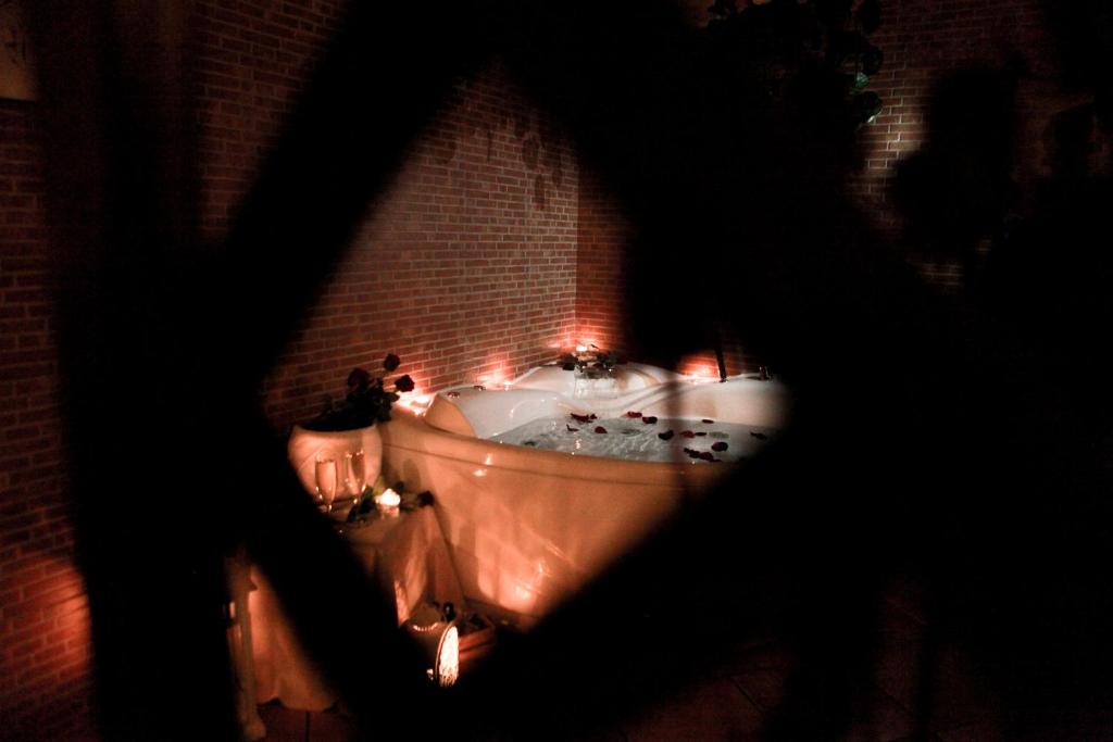 This suite features a hot tub and a fireplace. Featuring a private entrance, this spacious suite also consists of 1 living room, 1 separate bedroom and 1 bathroom with a shower. Boasting a terrace, this suite also provides a tea and coffee maker, a dining area and a flat-screen TV with streaming services. The unit offers 2 beds.
