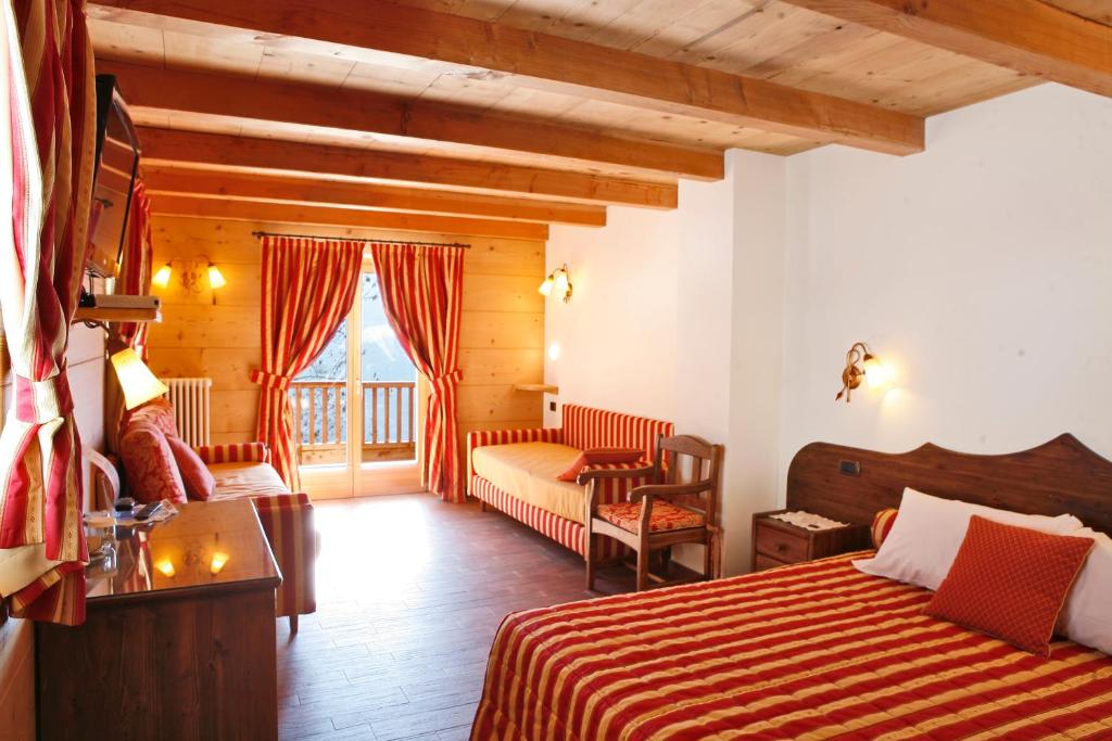 This triple room has a balcony with mountain view, a 32'' flat-screen TV with free Sky channels, a safe and tile/marble floor. The private bathroom comes with slippers. WiFi is free.