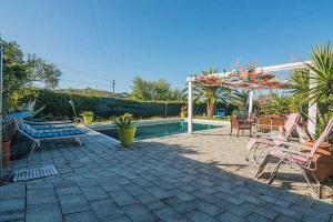 This quadruple room's special feature is the pool with a view. Offering free toiletries, this quadruple room includes a private bathroom with a shower, a bidet and a hairdryer. The unit has a dining area, garden views, an outdoor dining area and wine/champagne is offered for guests. The unit has 4 beds.