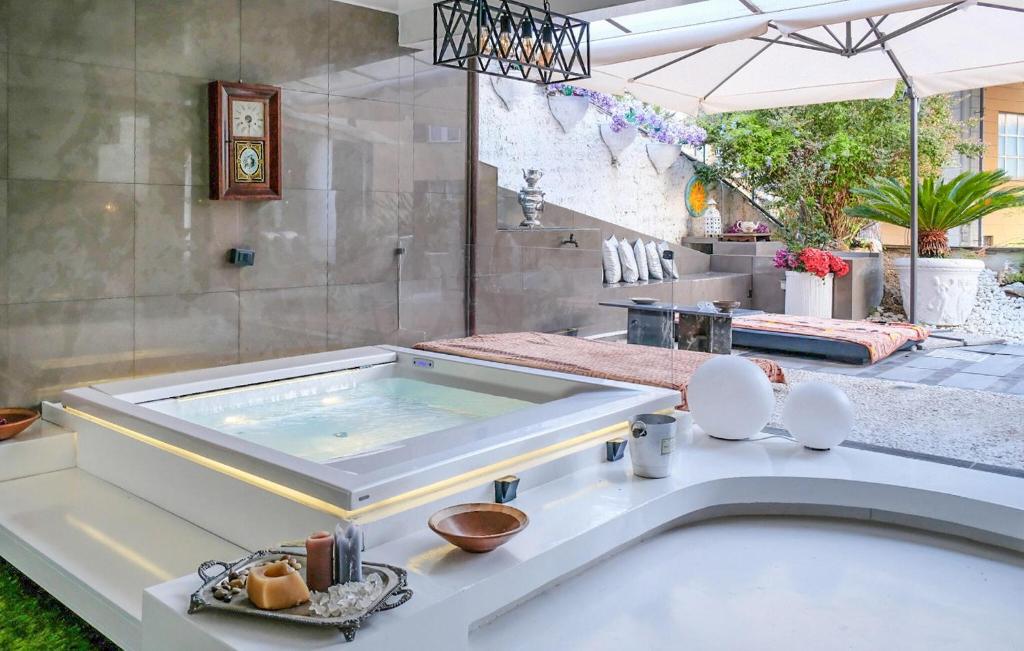 The hot tub is the standout feature of this apartment. In the well-equipped kitchen, guests will find a stovetop, a refrigerator, a dishwasher and kitchenware. The spacious air-conditioned apartment features a TV, a private entrance, a tea and coffee maker and a dining area. The unit has 3 beds and 1 futon.