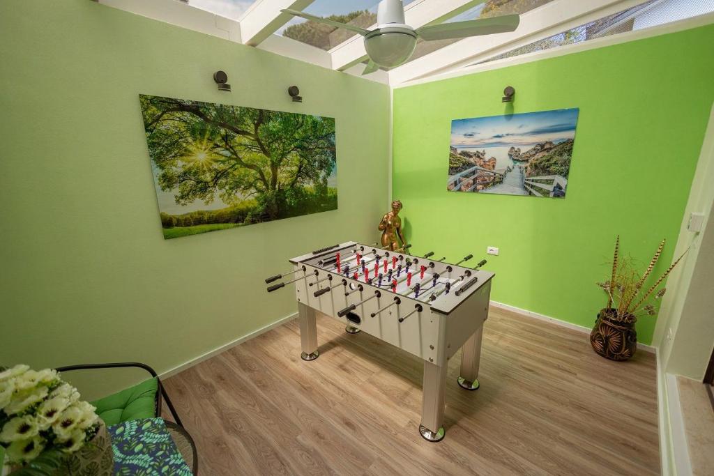 Guests will have a special experience as this villa provides a private pool and a fireplace. The air-conditioned villa features 5 bedrooms and 4 bathrooms with a shower and a bidet. Guests will find a refrigerator, an oven, a microwave and a toaster in the well-fitted kitchenette. The villa also has a barbecue. The villa offers a washing machine, a coffee machine, as well as a terrace and a balcony. The unit offers 5 beds.