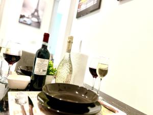 The double room includes a shared bathroom fitted with a shower, a bidet and a hairdryer. Meals can be prepared in the well-fitted kitchen, which is fitted with a stovetop, a refrigerator, kitchenware and an oven. The spacious air-conditioned double room offers a flat-screen TV with streaming services, a tea and coffee maker, a dining area, a wardrobe as well as city views. The unit has 2 beds.