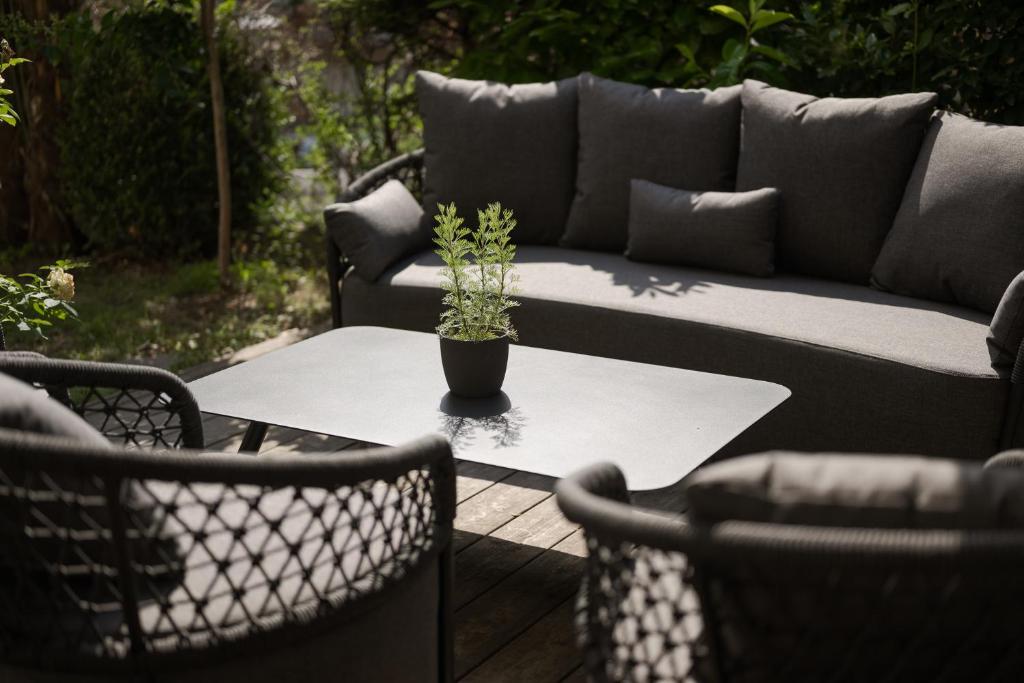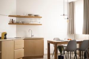 The apartment has private entrance. Each unit has a terrace, a fully equipped kitchen with a dishwasher, a dining area, and a seating area with a flat-screen TV, while the private bathroom includes a shower and bathrobes.