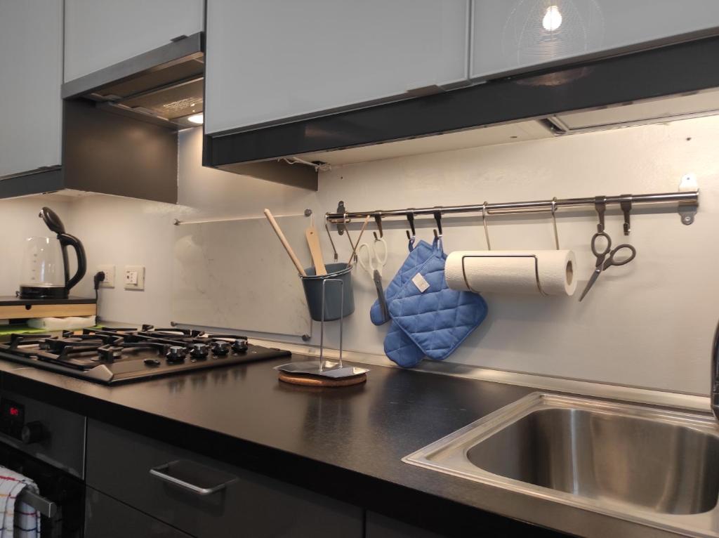 The air-conditioned apartment consists of 1 bedroom, a living room, a fully equipped kitchen with a dishwasher and a coffee machine, and 1 bathroom with a bidet and slippers. Towels and bed linen are provided in the apartment.