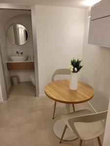 The air-conditioned apartment has 1 bedroom and 1 bathroom with a walk-in shower and a hairdryer. In the well-equipped kitchen, guests will find a refrigerator, kitchenware, a microwave and a toaster. The apartment features tiled floors, a seating area with a flat-screen TV with streaming services, a tea and coffee maker, a dining area, as well as heating. The unit has 1 bed.