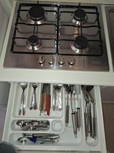 The air-conditioned apartment consists of 1 bedroom, a living room, a fully equipped kitchen with an oven and a kettle, and 1 bathroom with a bidet and a hair dryer. Towels and bed linen are provided in the apartment.
