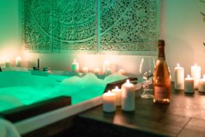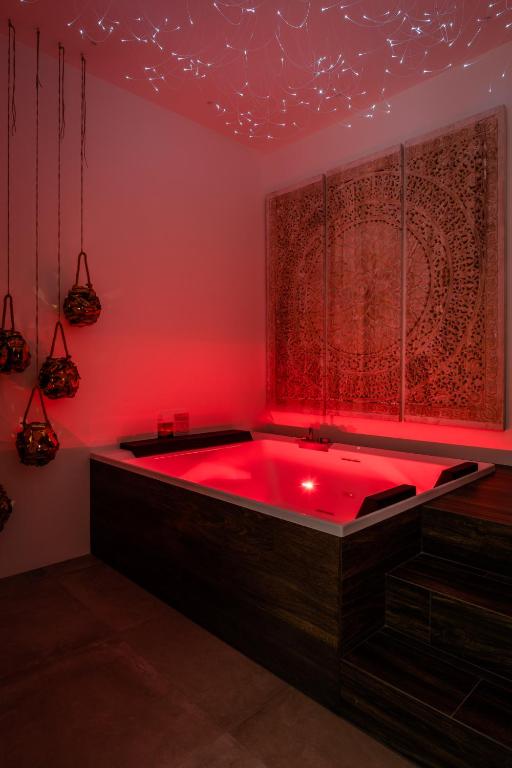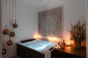 This suite's special features are the hot tub and the sauna. Featuring a private entrance, this air-conditioned suite consists of 1 living room, 1 separate bedroom and 2 bathrooms with a bath and a shower. The well-equipped kitchen features a stovetop, a refrigerator, kitchenware and an oven. The spacious suite provides a flat-screen TV with streaming services, a washing machine, a tea and coffee maker, a seating area as well as a quiet street view. The unit offers 2 beds.