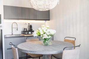 The accommodation provides a sauna, free Wifi throughout the property, and bicycle parking. The units at the apartment complex come with air conditioning, a seating area, a flat-screen TV with streaming services, a kitchen, a dining area, and a private bathroom with slippers, a bidet, and a hair dryer.