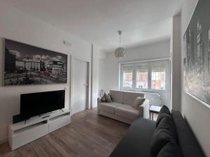 The air-conditioned apartment consists of 1 bedroom, a living room, a fully equipped kitchen with a dishwasher and a coffee machine, and 1 bathroom with a bidet and a hair dryer. A flat-screen TV is featured.