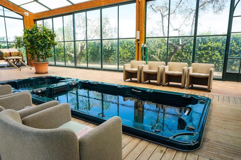 At the farm stay, each unit comes with bed linen and towels. The farm stay also features an indoor pool and a hot tub for guests to relax in. For guests with children, Pian De' Somari provides both an indoor and outdoor play area.