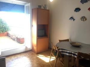 Offering a terrace and sea views, the apartment includes 1 bedroom, a living room, flat-screen TV, an equipped kitchenette, and 1 bathroom with a bidet and a bath. Guests can enjoy a meal on an outdoor dining area while overlooking the city views.