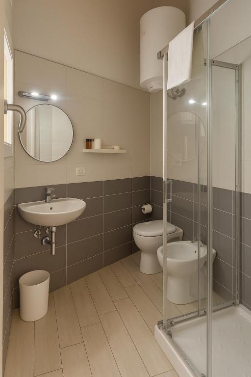 Each room has a flat-screen TV. Rooms have a private bathroom with a bidet and shower, with bathrobes and a hairdryer provided.