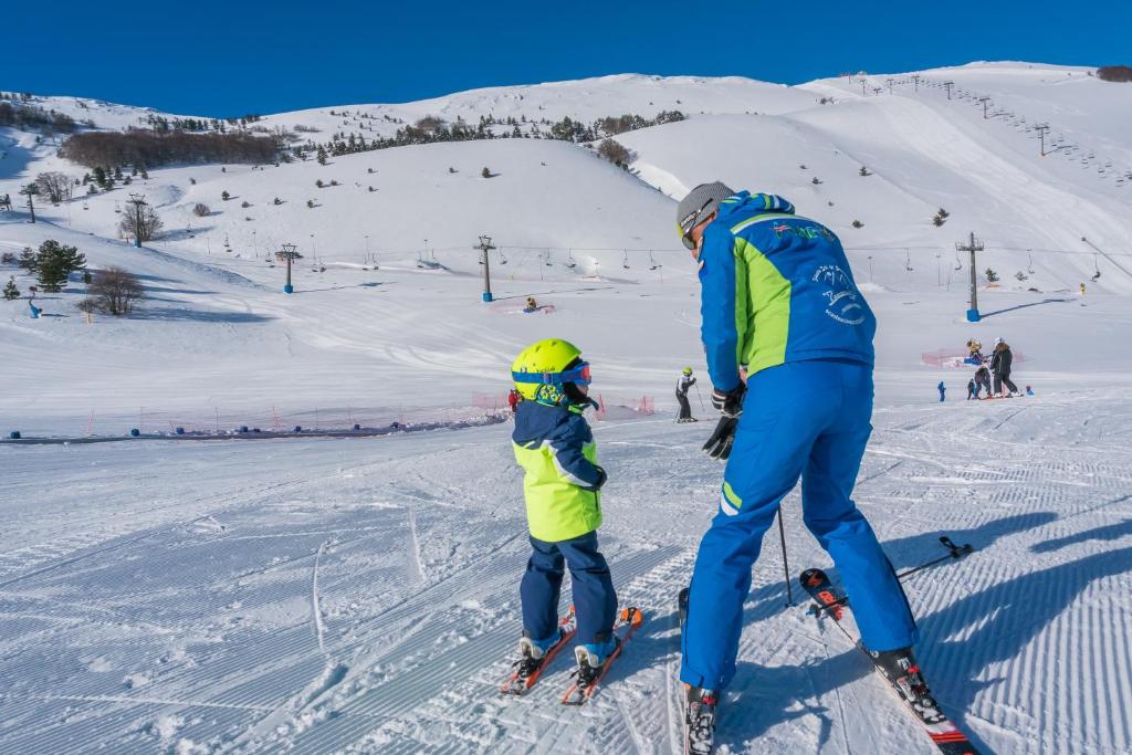 Eggs and gluten-free options are available on request. La Corniola restaurant serves Italian and Abruzzo cuisine and pizza. Discounts are available at the Rivisondoli and Roccaraso ski areas. A free ski bus stops right outside the hotel in ski season.