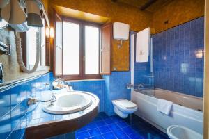 Its interior design combines contemporary and traditional styles with rare antiques and pieces of furniture. Rooms are elegant and cozy with carpeted floors and different colored walls. Each one has free Wi-Fi, an LCD TV with Sky channels, and a private bathroom with bathrobes and slippers.