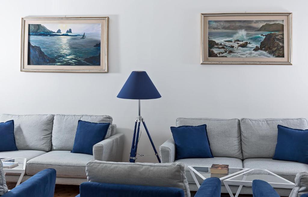 This top-floor suite decorated with blue Vietri tiles has free WiFi, a decorated patio with outdoor shower and a bathroom with shower. Also features views of the Gulf on Naples and a large terrace with sun loungers and deck chairs.