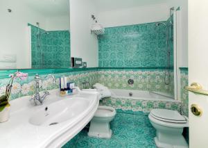 All rooms include satellite TV, a mini-bar and a private bathroom with Vietri tiles and a bath or a shower. Wi-Fi is free.