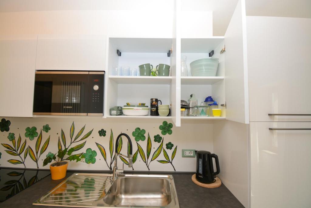 Residence Corte Bellebarbe is a recently renovated apartment in Rivoli Veronese where guests can make the most of its open-air bath and garden. With mountain views, this accommodation features a patio.