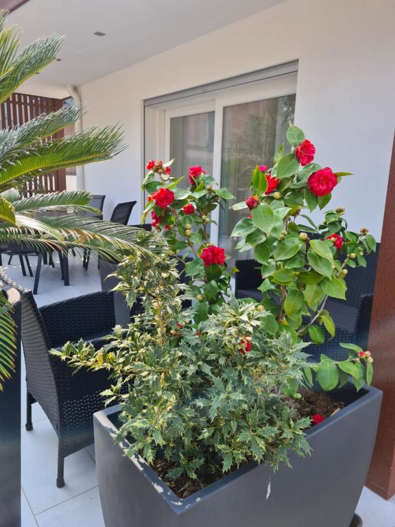 This modern air-conditioned apartment includes 2 bedrooms, a living room with kitchenette and sofa bed, a bathroom and a balcony. Guests enjoy bike storage and private parking.