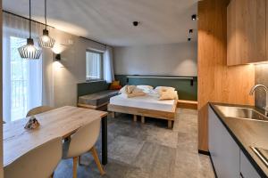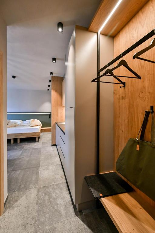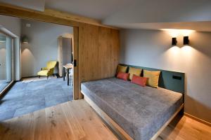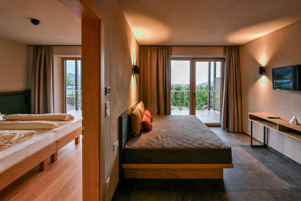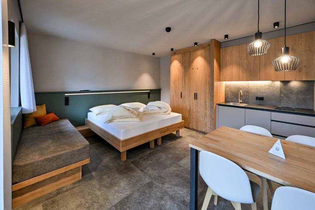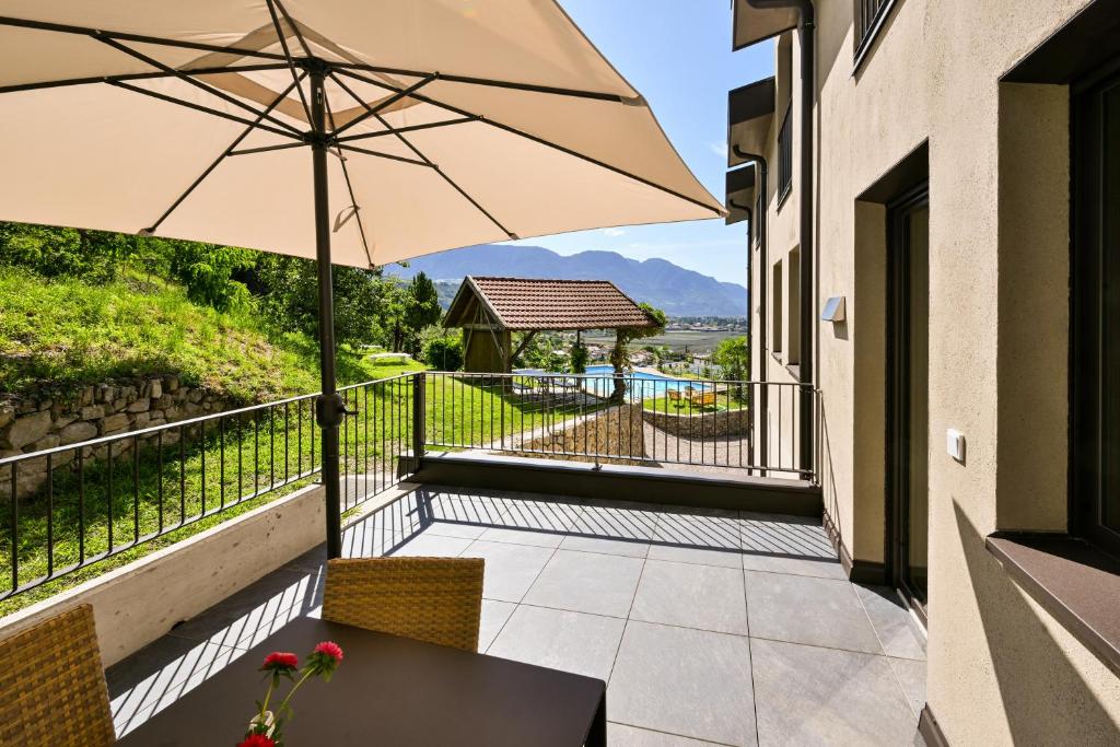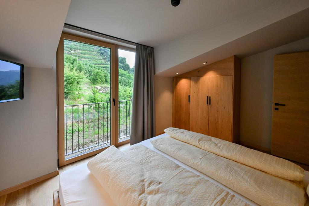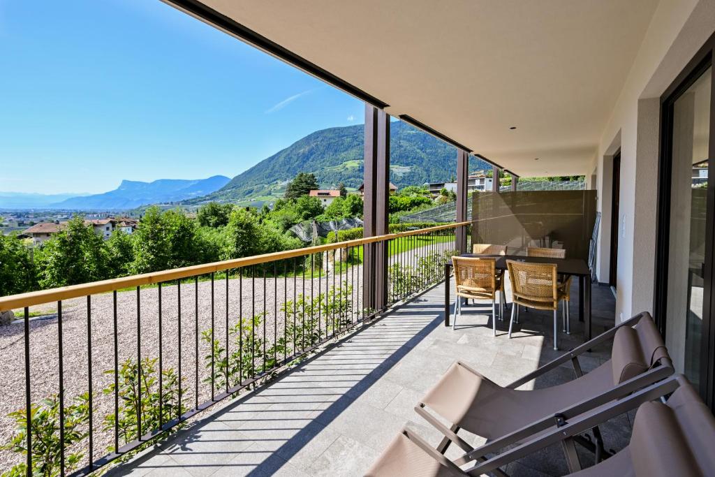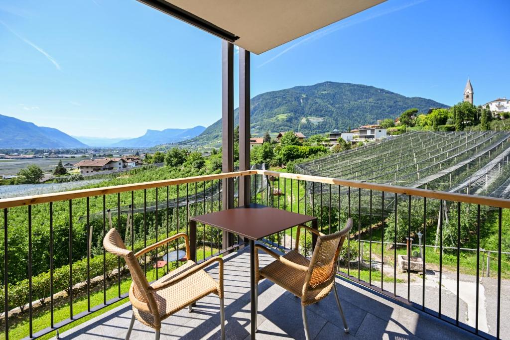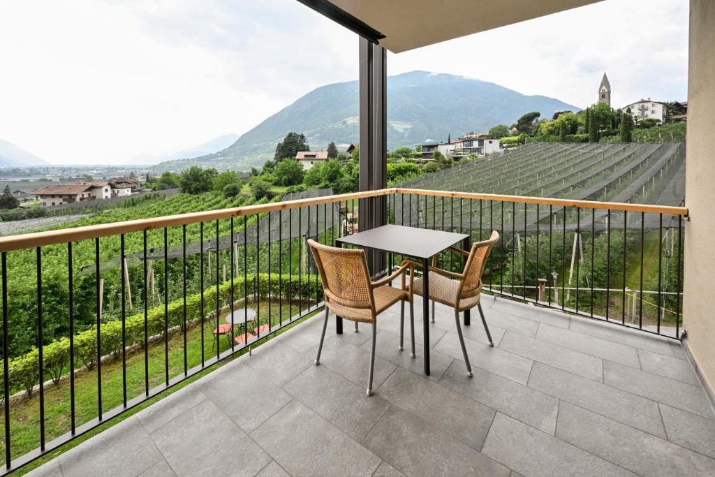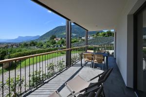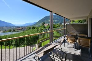 This open-plan room contains a sleeping area and a living room area with kitchenette. Offers a south-facing balcony with views of Merano and the valley.