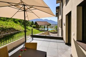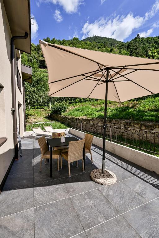 This apartment consists of a bedroom, living room with double sofa bed, and kitchenette. Offers a small balcony with views of Merano.