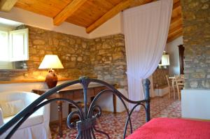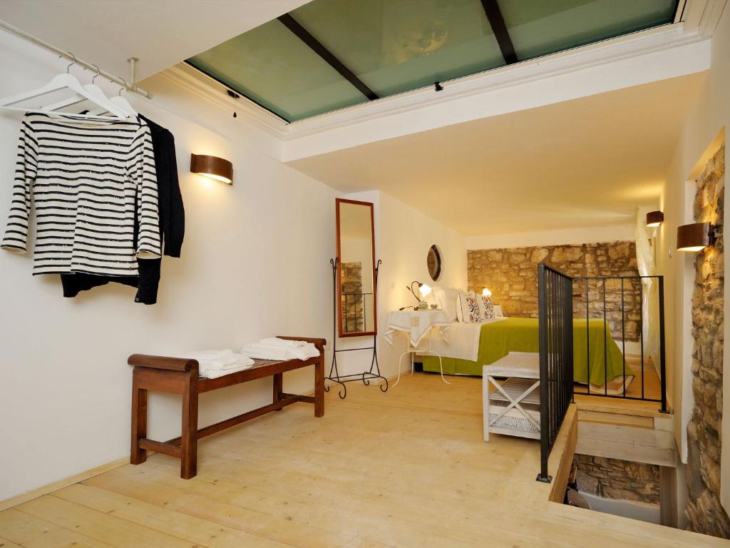 This elegant studio with panoramic sea views includes high ceilings with wooden beams, stone walls and a kitchenette. The sleeping area is raised.