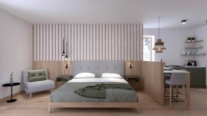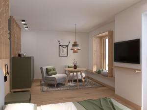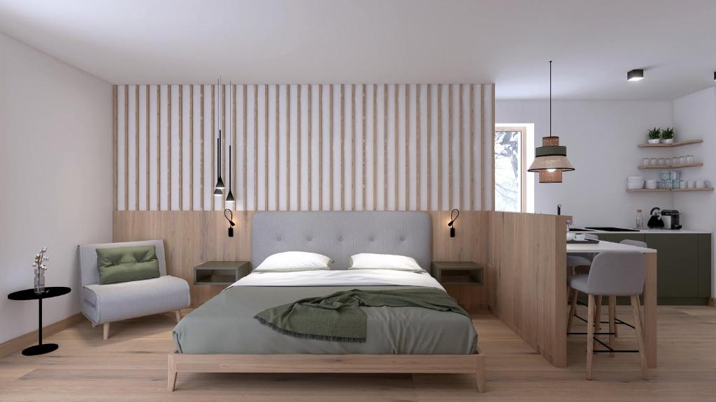 The air-conditioned apartment has 1 bedroom and 1 bathroom with a walk-in shower and a bidet. Meals can be prepared in the well-fitted kitchenette, which has a stovetop, a refrigerator, a dishwasher and kitchenware. The apartment features parquet floors, a seating area with a flat-screen TV, soundproof walls, a tea and coffee maker as well as mountain views. The unit has 1 bed.