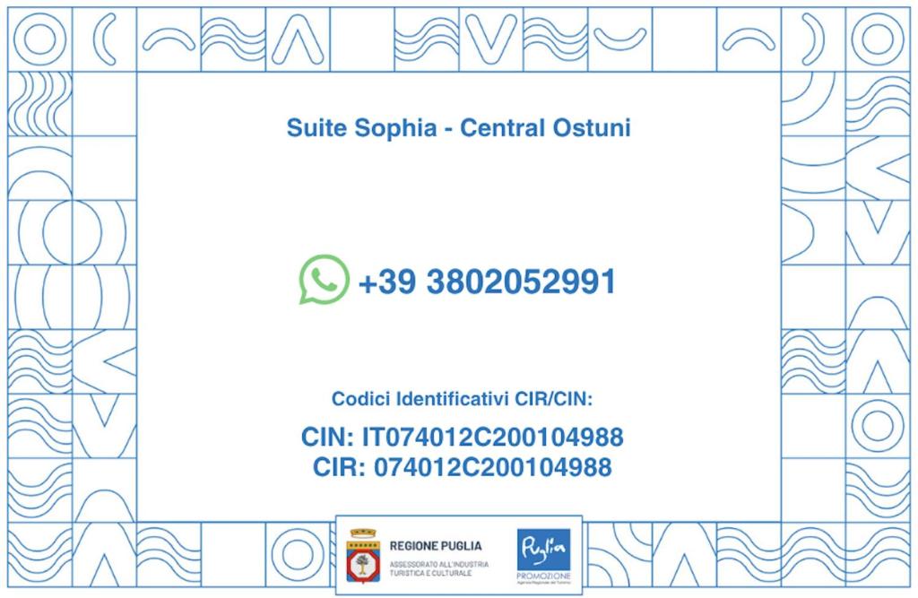 It is possible to check the regularity of the CIN of the accommodation on the website of the Ministry of Tourism: CIN SearchPlaces near Suite Sophia - Central Ostuni, Ostuni