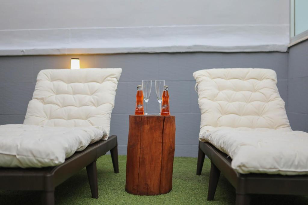 The spacious double room offers air conditioning, a tea and coffee maker, as well as a private bathroom boasting a shower and a bidet. The fully equipped kitchenette features a stovetop, a refrigerator and kitchenware. This double room has a dining area, a wardrobe, a flat-screen TV and a terrace. The unit has 1 bed.