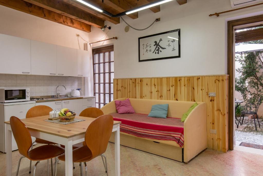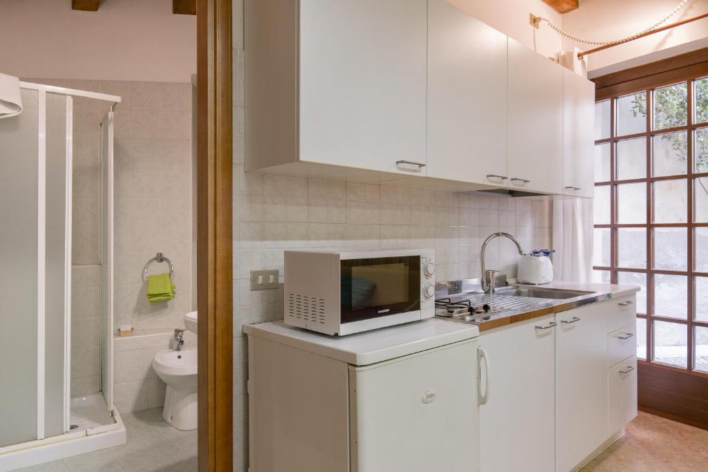 The property is a 7-minute walk from Via Mazzini and within 500 yards of the city center. Leading onto a terrace with garden views, the air-conditioned apartment consists of 1 bedroom and a fully equipped kitchenette.