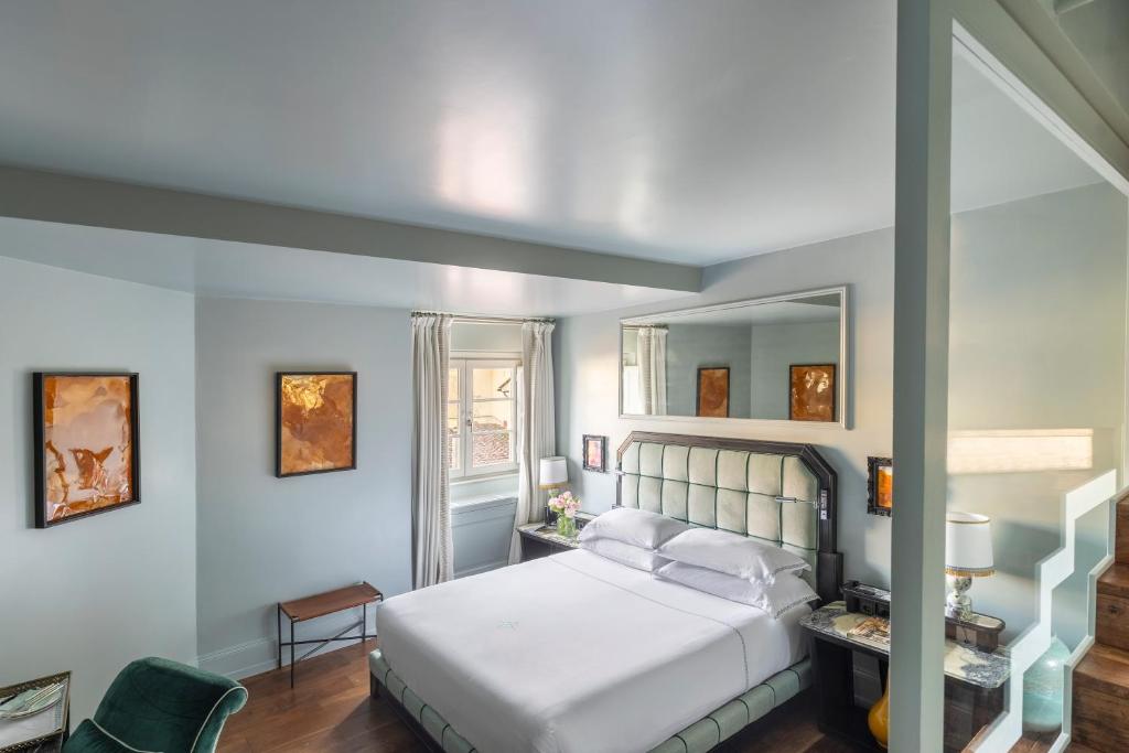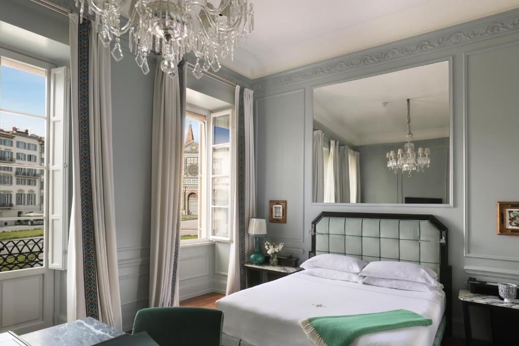 Set on 2 levels, this suite features a sitting room and relaxation area with sofa bed. Upstairs, there is a bedroom. The junior suite faces Piazza Santa Maria Novella’s columnade.