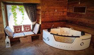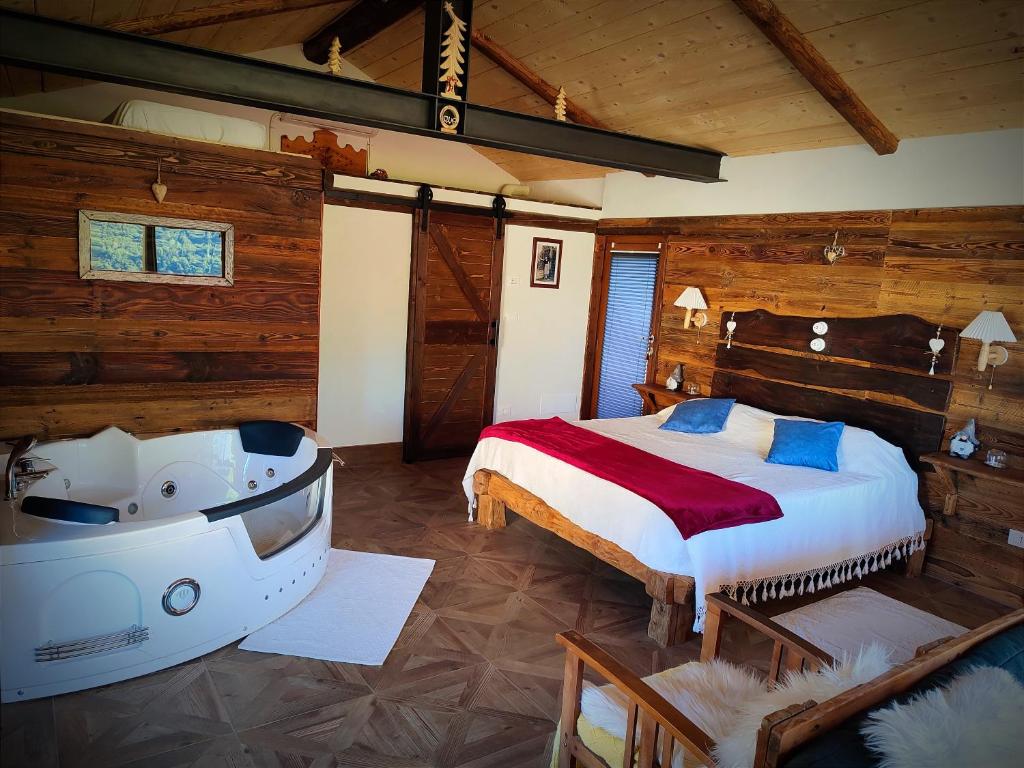 Guests will have a special experience as this chalet features a hot tub, a spa bath and a sauna. Featuring a private entrance, this air-conditioned chalet consists of 2 living rooms, 2 separate bedrooms and 2 bathrooms with a shower and a bidet. Guests will find a stovetop, a refrigerator, kitchenware and an oven in the kitchen. The chalet also provides guests with a barbecue. The spacious chalet provides a flat-screen TV with streaming services, a washing machine, a mini-bar, a tea and coffee maker as well as garden views. The unit offers 6 beds.