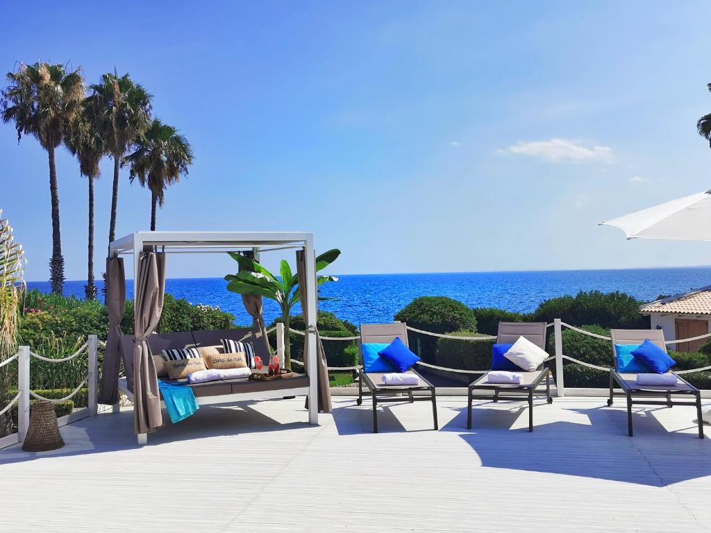 This beachfront property offers access to a balcony, free private parking, and free Wifi. Outdoor seating is also available at the villa. Featuring a terrace and sea views, the villa includes 4 bedrooms, a living room, satellite flat-screen TV, an equipped kitchen, and 3 bathrooms with a walk-in shower and a bidet.