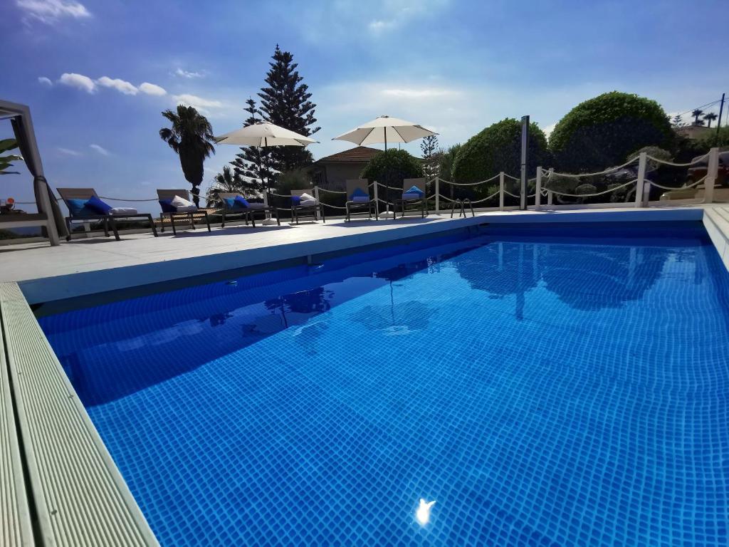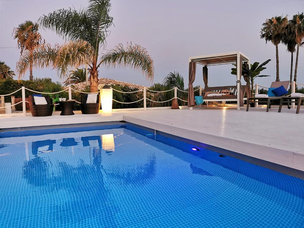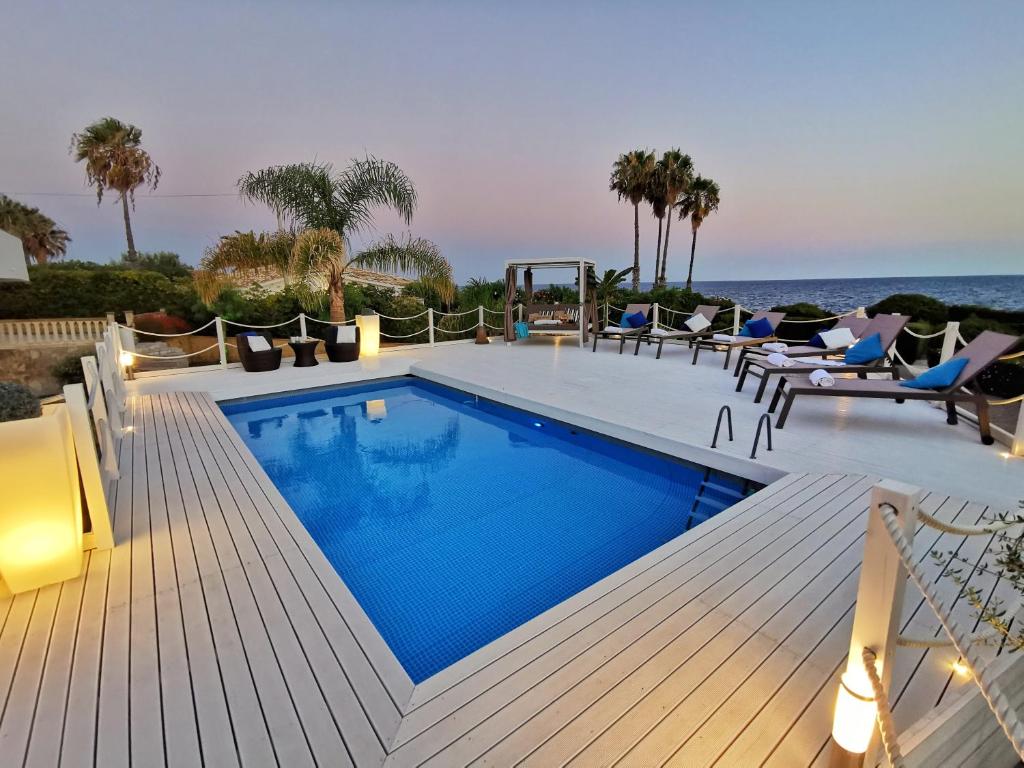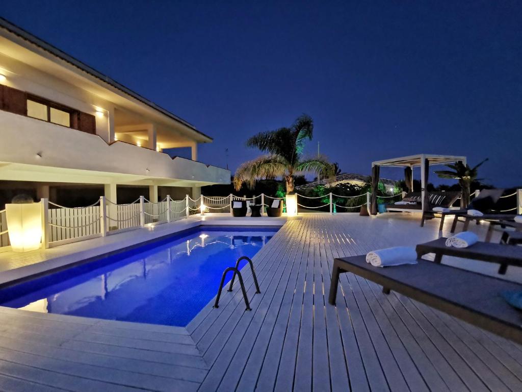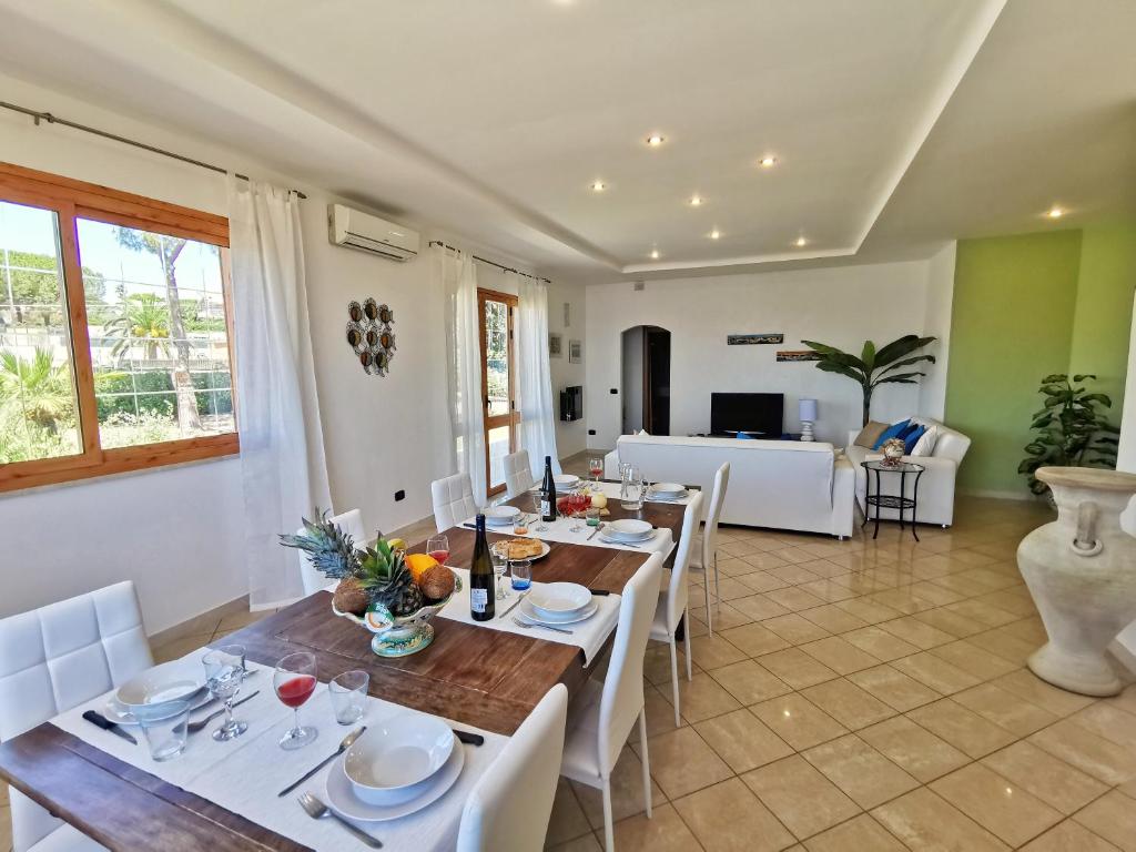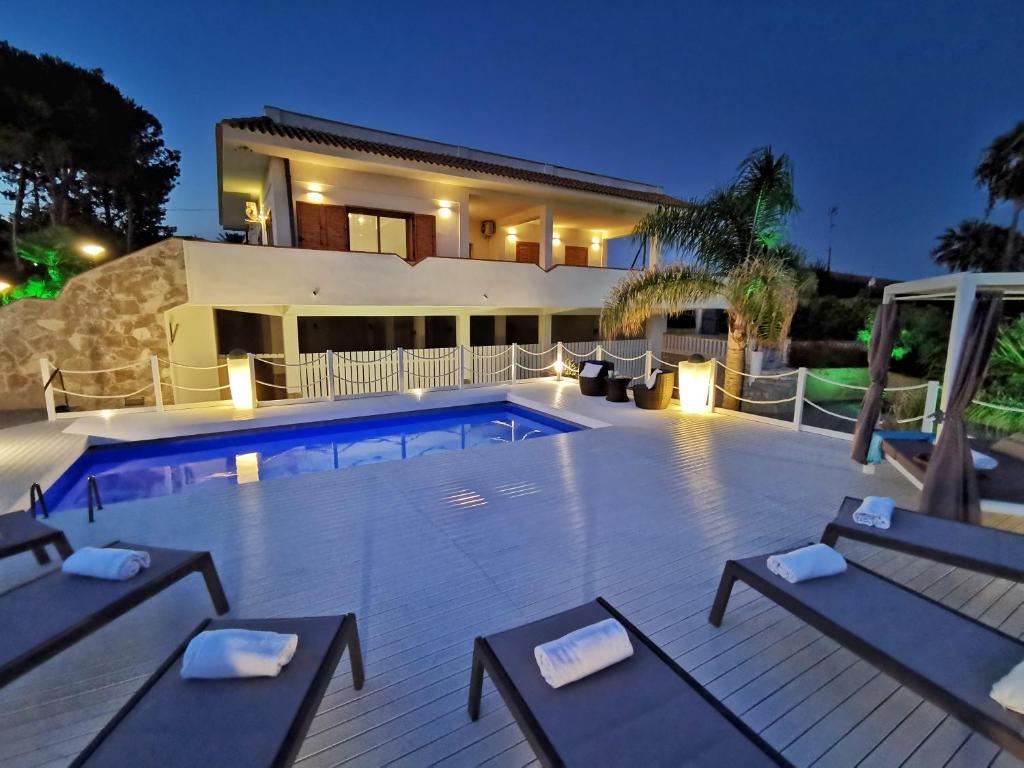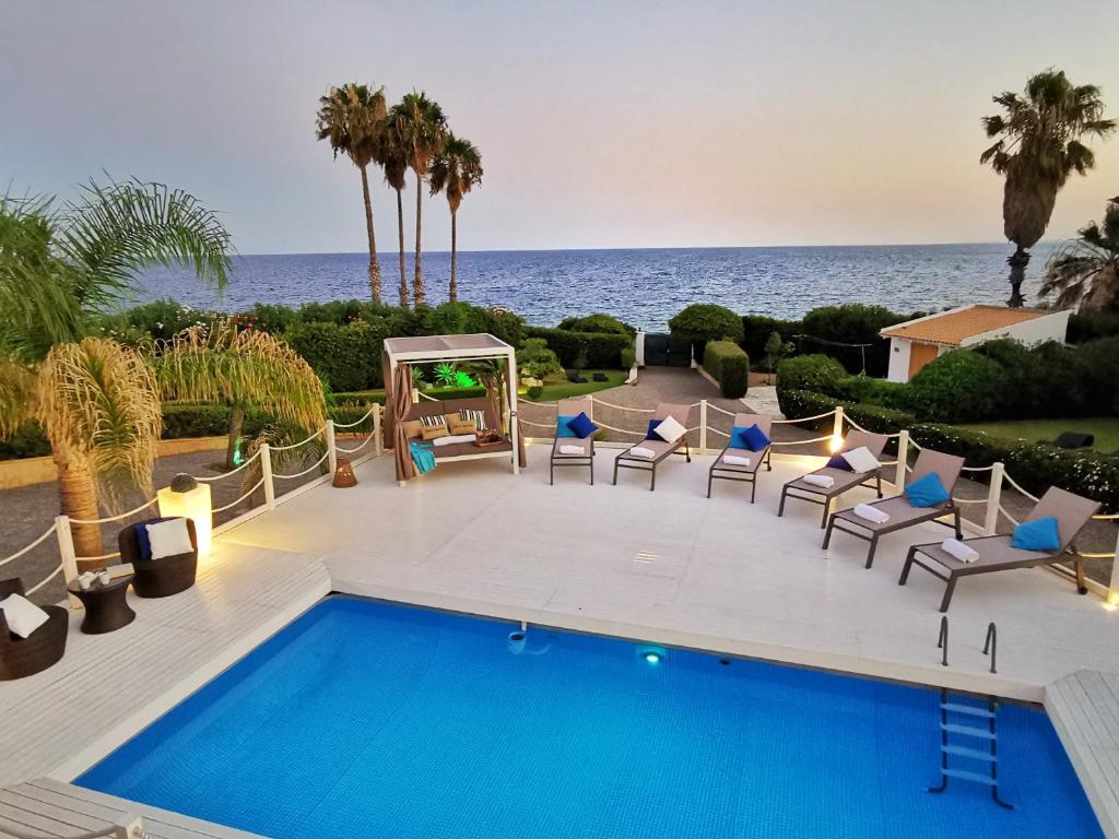 A 10-minute walk from Fontane Bianche beach in Fontane Bianche, Villa Arenile - Seaside - Swimmingpool- Private access to Sea - waterfront - Fontane Bianche - Siracusa provides accommodations with access to a fitness room and solarium.